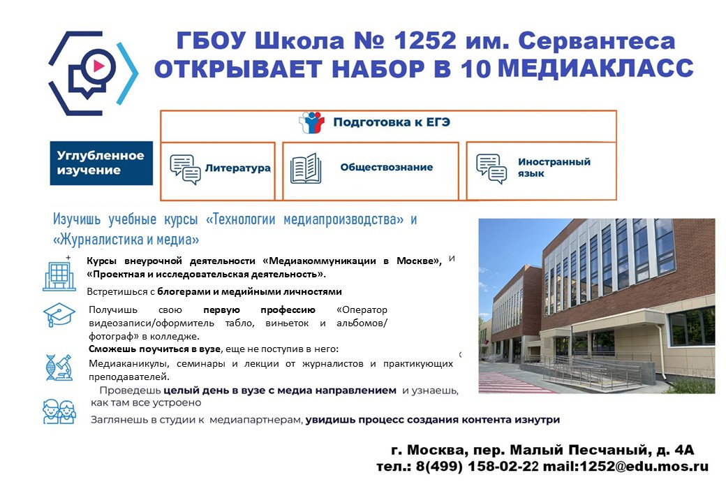 ПРОДОЛЖАЕТСЯ НАБОР В 10-Й МЕДИА И ПРЕДПРИНИМАТЕЛЬСКИЙ КЛАССЫ ШКОЛЫ ИМЕНИ СЕРВАНТЕСА‼️