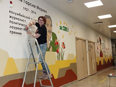 «Мы, преподаватели школы Ольга Бурова и Елена Шпилевая были безумно рады возможности оформить одну из стен 2 этажа картинами известных латиноамериканских деятелей. Надеемся продолжить эту историю, выбор огромный: Пабло Неруда, Рубен Дарио, Марио Варгас Льоса и др. Возможно провести опрос, чтобы ребята тоже участвовали в создании школьного пространства.»