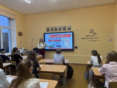 на которых рассказывали ребятам о городском образовательном проекте «Мой героический район» и о значимом историческом событии: 5 декабря - День начала контрнаступления советских войск против немецко-фашистских войск в Битве под Москвой.